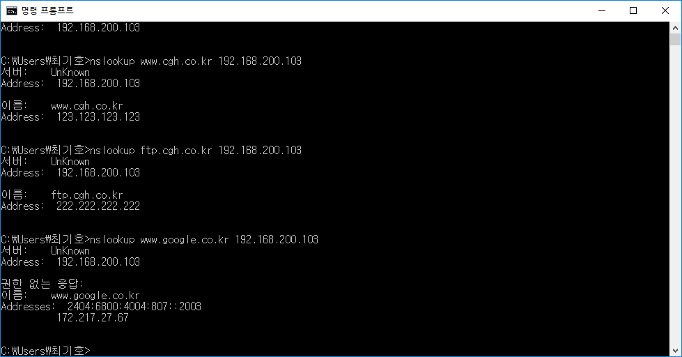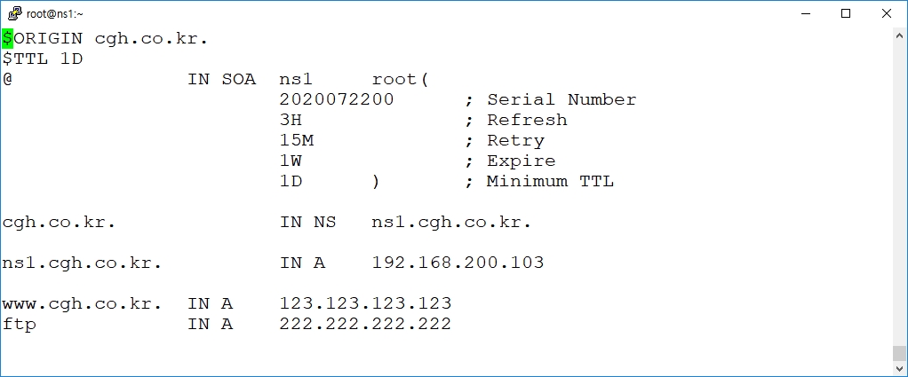 ns1.cgh.co.kr. IN A 192.168.200.103
